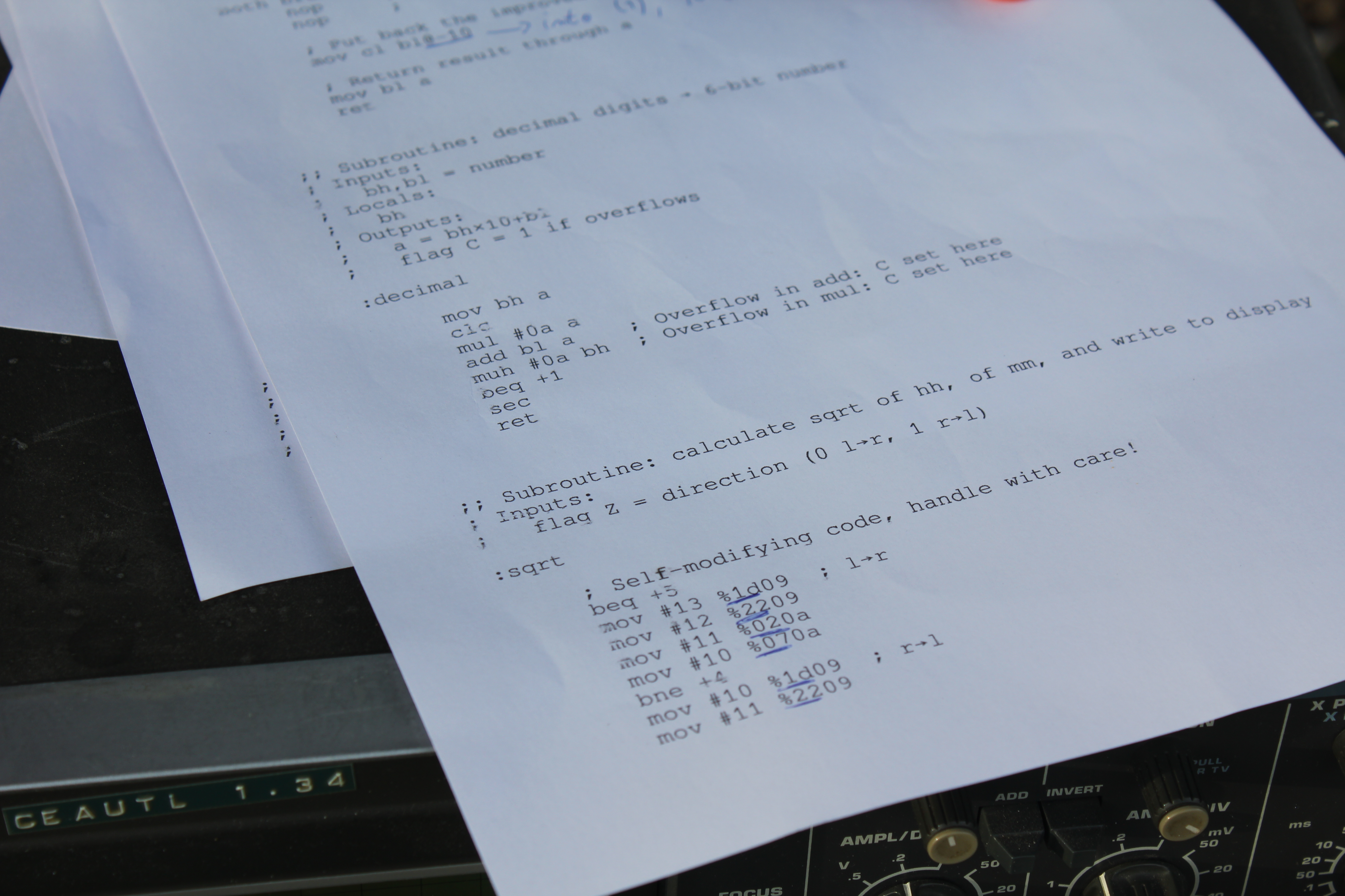 As a bonus, here is the actual snippet of code used for calculating a square root in one iteration, in our fictional machine’s assembly language ;)